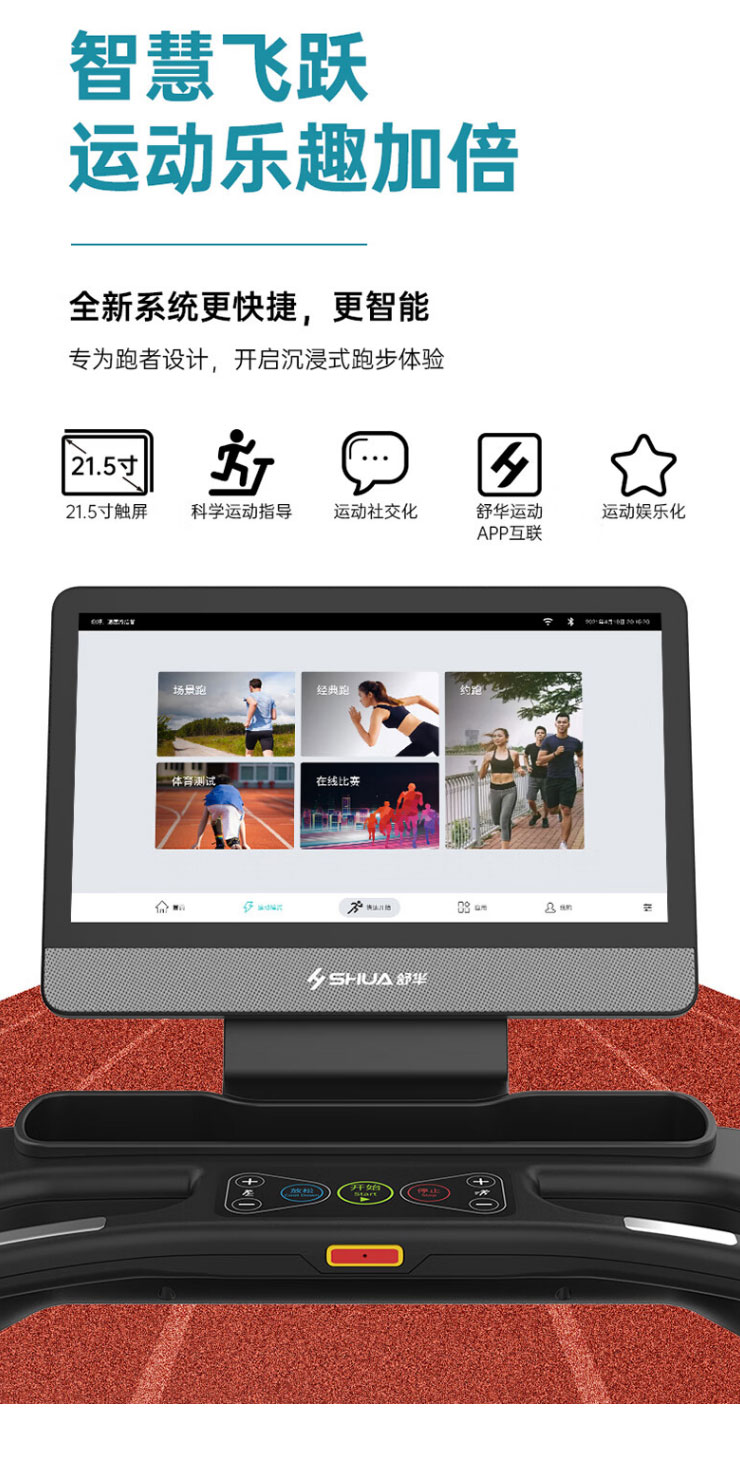 内置程序:搭载leyu.乐鱼跑步机系统3.0 :4种程式(5km 往返、间歇、登山、燃脂)+体育考试+倒计模式:时间/距离/ 卡路里+在线约跑+地图跑+leyu.乐鱼运动+应用软件