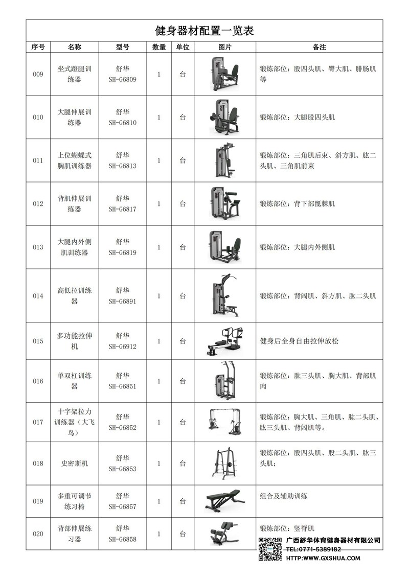 18.leyu.乐鱼史密斯机SH-G6853*1台-锻炼股四头肌、股二头肌、肱三头肌;史密斯机采用固定轨迹的杠铃设计,大大降低了训练过程中的安全风险,通过深蹲、卧推、肩推等经典动作,可以针对性地锻炼腿部力量、上肢力量、背部肌群、胸部塑形以及肩部稳定等,从而全面提升身体素质,满足不同的健身需求;