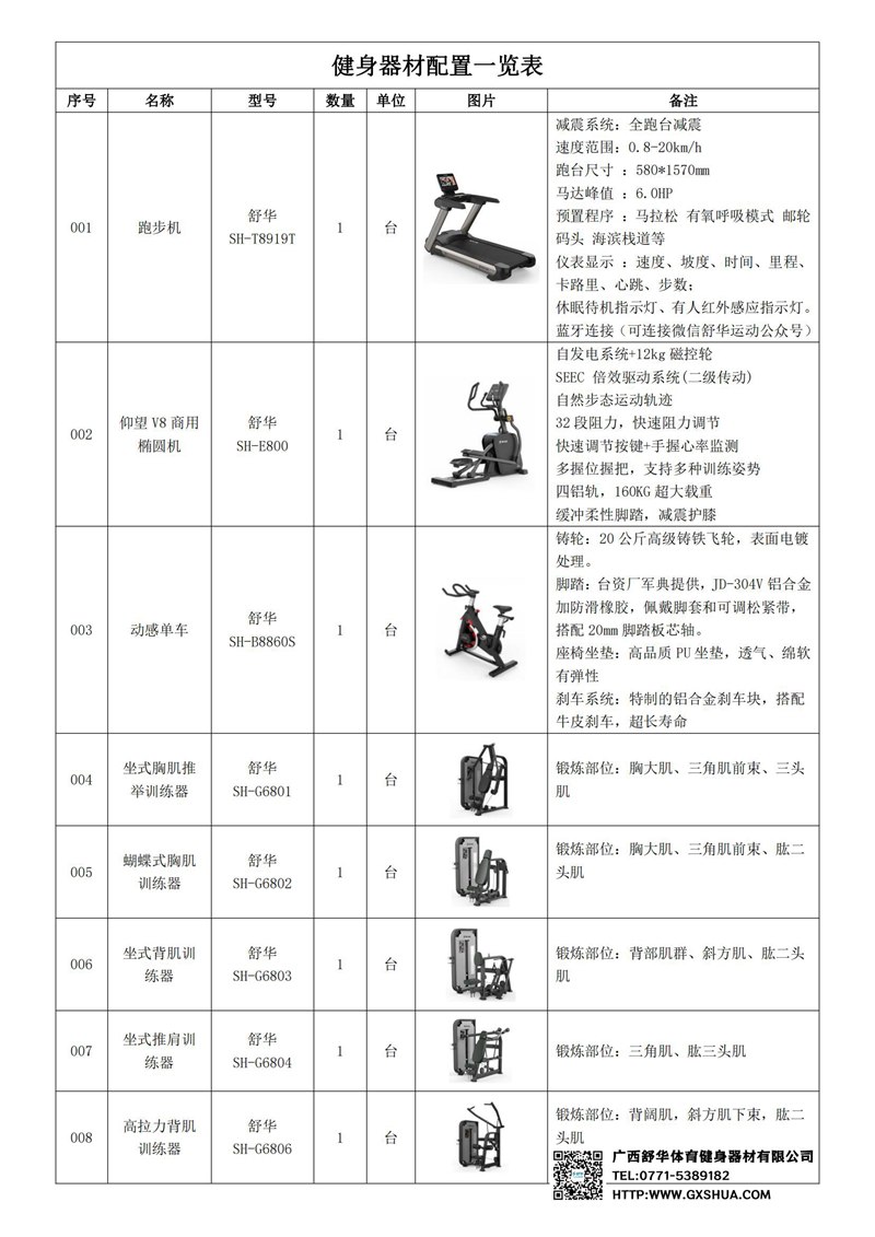 1.leyu.乐鱼V9+智能跑步机SH-T8919T*5台-V9+采用全跑台减震设计,为跑者提供舒适的落脚地感和稳定的跑步支撑,良好的缓冲防护,降低膝关节受伤风险。商用大跑台,为跑者提供从容奔跑空间,180kg承载力,580*1570纯跑台面积,满足专业健身需求。V9+采用F级商用马达,6HP峰值马力,20km/h最高速度,提供源源不断的动力。V9+内置健身直播软件,每周提供直播课程,内含大量专业线上健身点播课程,可为健身房不同人群提供多样化健身课程服务。V9+搭载全新跑步姿态分析系统,提供五大步态数据,为跑者提供综合评估及训练建议,帮助跑者调整优化跑姿,让运动更科学高效。3D竞赛软件,画面如同VR游戏效果,提供训练及竞赛模式,线上竞赛模式,可联动不同单位及公司,不同健身房之间健身爱好者,打造职工健身文化,促进交流。